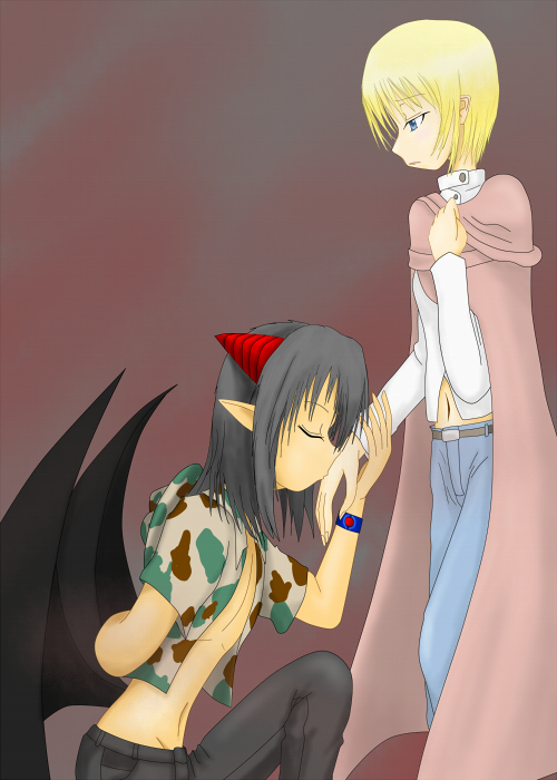 とりあえず報告を。 明日以降大学の期末対策のため絵チャ断ちします。 ぶん2のキャラシと某ゲームの絵くらいは描きに来るつもりですが、しばらくはこちらから遠ざかります。 期末最終日はおそらく8月4日の模様。 それまで失礼いたします。 一人カラオケ行ってきたTOMです。 久しぶりに歌の練習するために一人で行ったんだよ、決して一緒に行く友達いないからじゃ…ないんだからなっ!……独り楽しすギルぜーーーーーーー!! まあそれはともかく。 最近版権はヘタリアにお熱すぎるのでついつい絵も描き始めてるわけですが。 難しいよーーーこのラフ描くのにどれだけ時間使ったことか。そしてペン入れできる気がしない。 誰かいいやり方教えてくだs …そしてどうせ↑見てもキャラの判別ができないと思うから一応書いておくと、左英右日なんだよ一応…orz さって、それはともかく並行してハンマンガも描いてるんだよ。全然進まないy だって細かい流れ考えてなかったんだもn(死 …頑張る俺頑張る! よっしアレスにプロポーズ?させてきたぜ。 ようやくできた…許可いただいてから長かったなあ畜生俺の遅筆呪わしい。 まあ1/100ダブルオーライザーのガンプラとか作ってるやつが悪いんだけd 使い魔アレスの使い方は追記に書いとこう…設定的な感じで。 次はリアの方だね。レベルの差を見せつけられたすげえ続き漫画が返ってきたのでできるだけ頑張ります…。 しかしまあなんかハンでやたらと漫画描く羽目になって嬉しい悲鳴が止まりません。エクシアも同行者さんできたしねぇ。…誰か忘れてるような…。 とか言ってたらディエルナに刺されそうなのでブログで取り上げるくらいは…。 こいつも親衛隊なのでもしかしたら出番があるかもしれないしね。 まあ皆さんも書いてるとおり強欲な願いとかあからさまに物欲まみれ~な人には何もしゃべりません。 機嫌がよくて気に入った人相手なら、昔のことをぽろっと口にすることもあるかもしれません。 力づくで、とくると猛反撃を受けます。基本的に地上付近にばかりいるので大地のぱうわぁーを使いまくって攻撃してくるでしょう。 というわけで情報を聞き出せるのは気に入られそうな人で、タイミングを見計らう必要もあります。昼寝中とかに行くと機嫌悪すぎて話になりません。また、気まぐれすぎるので気長に相手するしかないです。 …アレス、エクシアにはしゃべる可能性あり。リアは願い事自体は微妙ですけど海賊所属なので、ギルド側として行動してる時でないと話してくれないかな。